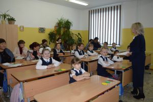 Участники семинара, разделившись на три группы, отправились на классные часы. Учитель начальных классов Лариса Юрьевна Иванова провела классный час в 1 классе на тему «Учитель – профессия нужная, важная, самая главная на земле». Учитель начальных классов Татьяна Сергеевна Тарбеева провела классный час во 2 классе на тему «Есть такая профессия – учитель!». Учитель биологии и химии Валерия Алексеевна Монхоева провела классный час в 6 классе на тему «Слово во славу учителя…».