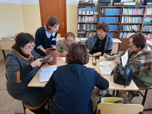 После внеурочной деятельности гостей ждала экскурсия по школе и школьному комплексному музею «Истоки», которую провели ученики 5 и 7 классов под руководством учителя истории и руководителя центра «Точка роста» Марии Анатольевны Проскуряковой. Ученицы Марии Анатольевны провели для гостей мастер-класс «Оцифровка музейного фонда школьного музея», включавший три площадки. На первой площадке гости учились заполнять инвентарные карты экспонатов и работать с музейными предметами, как это делают работники фондов. Вторая площадка «Фотографирование экспонатов» включала работу с профессиональным фотооборудованием, которое на региональном уровне есть только в Тугутуйской школе. На третьей площадке гости создавали гиф-анимации из фотографий музейных предметов в специальной компьютерной программе.