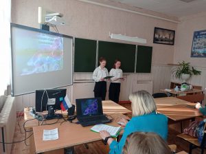 На занятии «Профессии моего села», которое проводил учитель географии и руководитель школьного музея «Истоки» Виктор Дмитриевич Тарбеев, были представлены результаты краеведческой деятельности учителя и учеников. Все занятие было построено на местном историческом материале, что было оценено гостями как особенно познавательное и продуктивное.